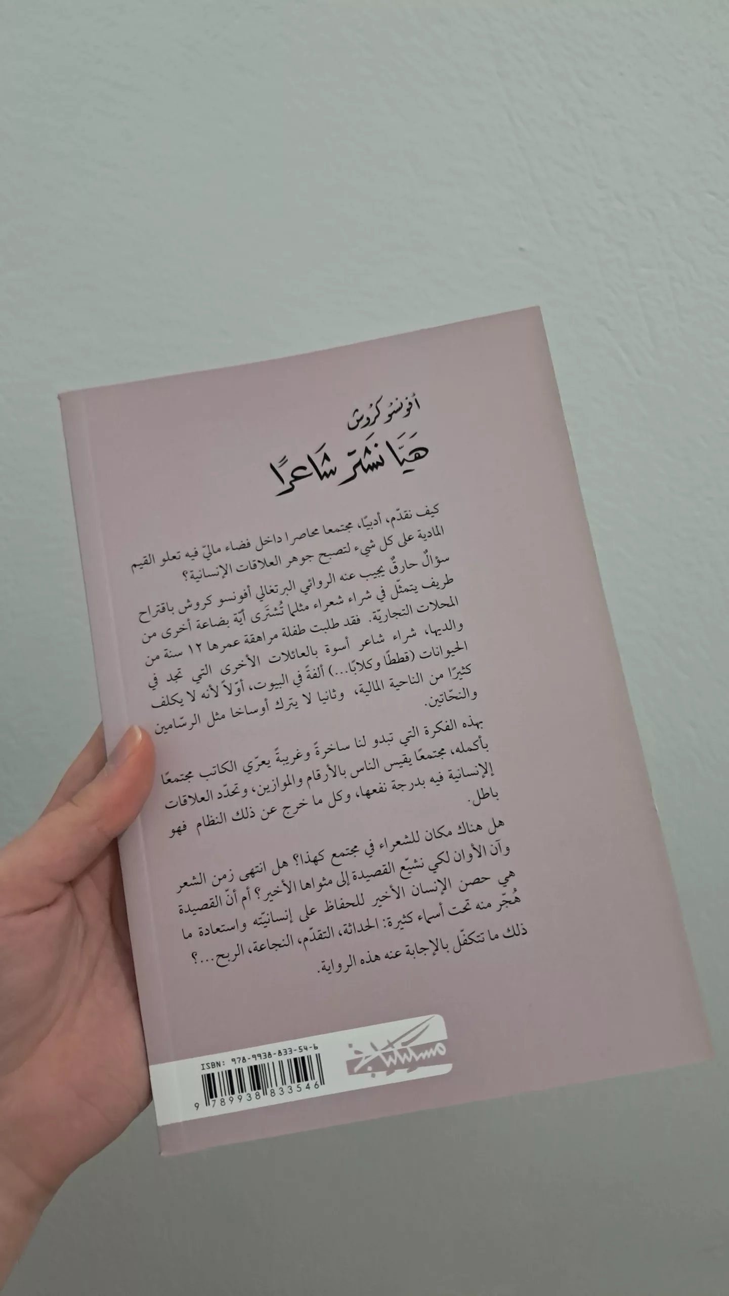 سؤال حارق يجيب عنه الروائي البرتغالي أفونسو كروش باقتراح طريف يتمثّل في شراء شعراء مثلما تُشتَرى أيّة بضاعة أخرى من المحلات التجارية. فقد طلبت طفلة مراهقة عمرها ١٢ سنة من والديها، شراء شاعر أسوة بالعائلات الأخرى التي تجد في الحيوانات (قططاً وكلاباً…) ألفةً في البيوت، أولاً لأنه لا يكلف كثيراً من الناحية المالية، وثانياً لا يترك أوساخاً مثل الرسامين والنحاتين.