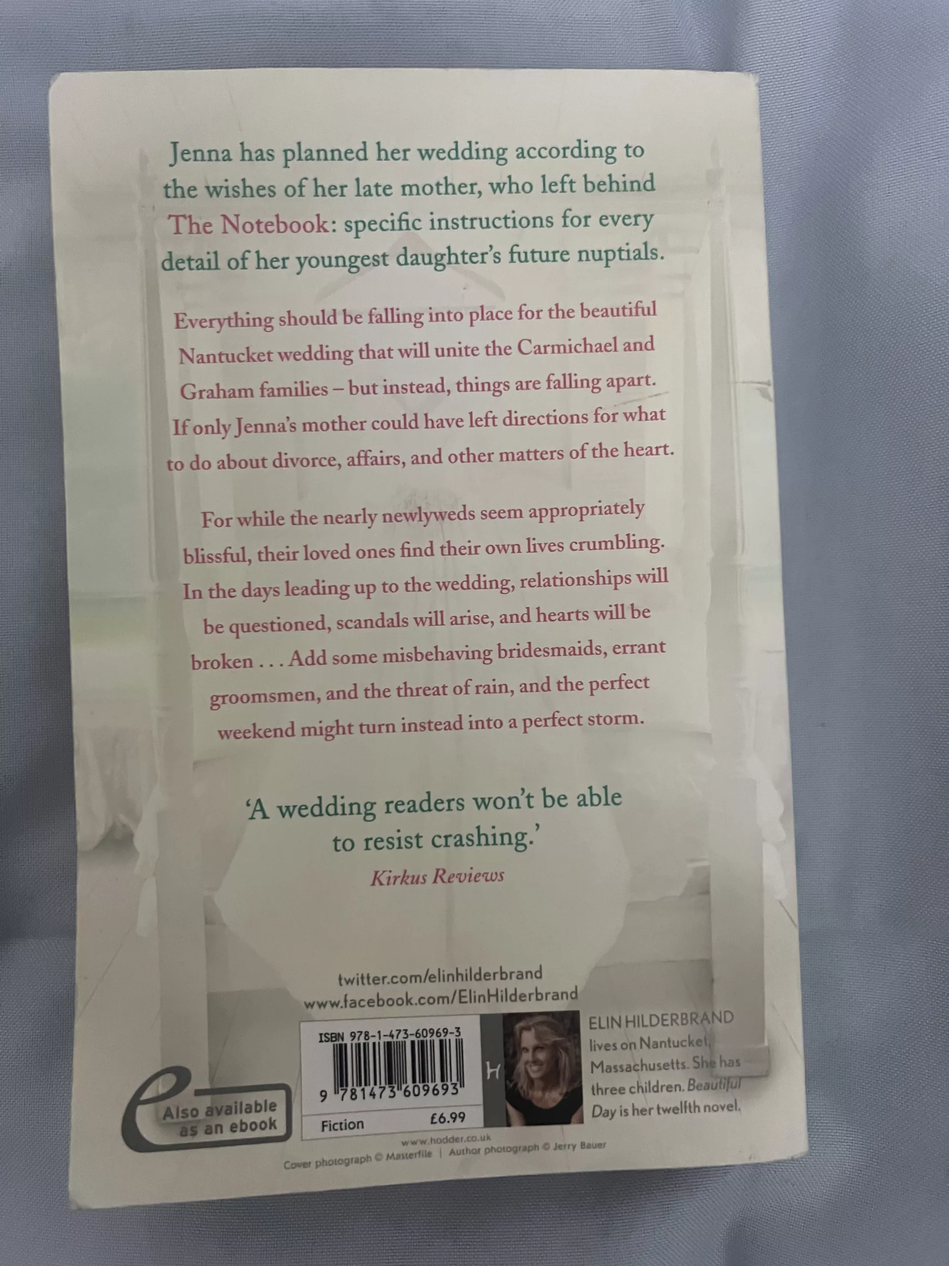 bestselling author Elin Hilderbrand. The story follows a family gathering for a wedding on Nantucket, guided by a notebook of instructions left by the bride’s late mother. It’s a tale of love, family secrets, and scandals.