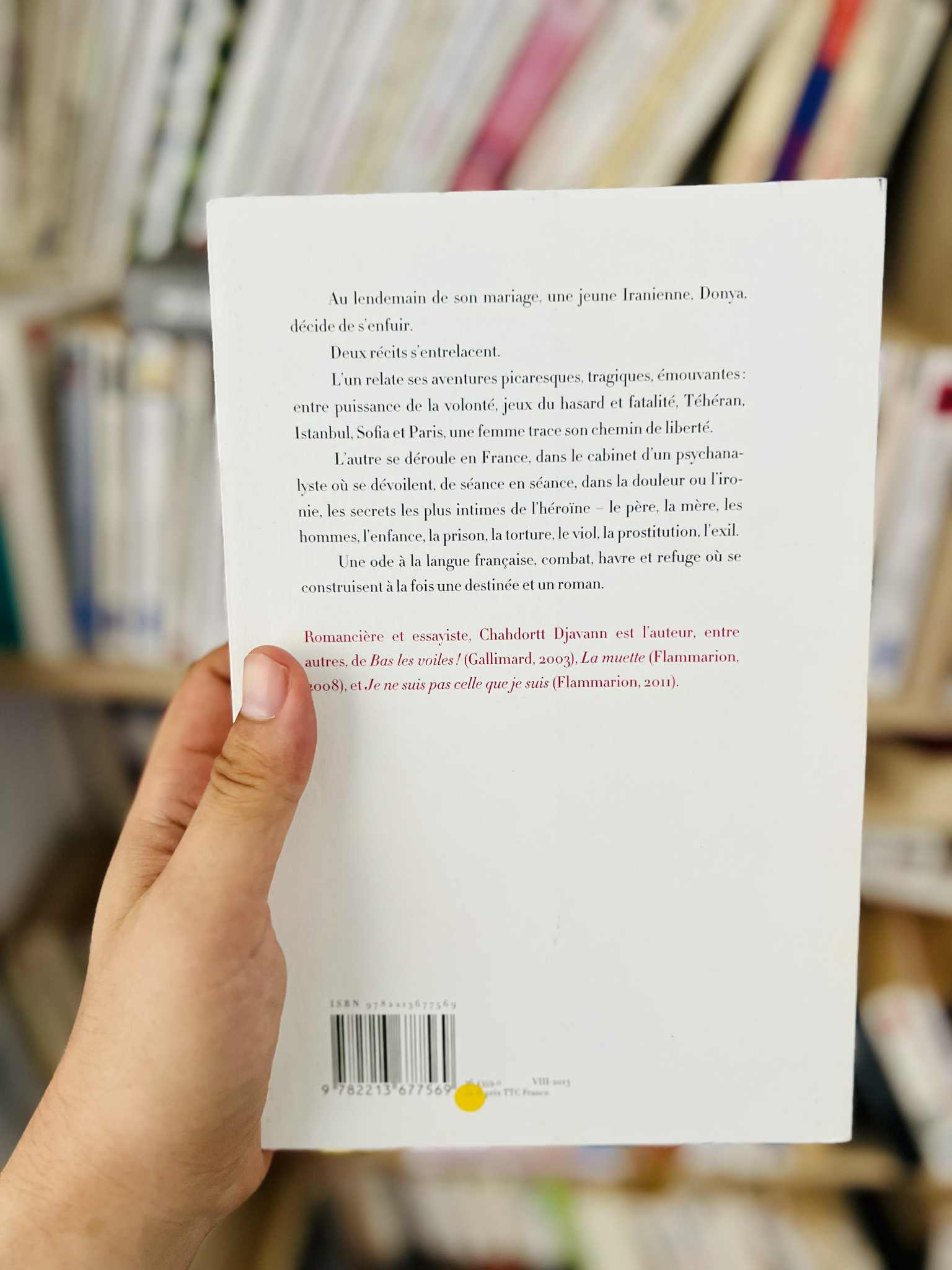 C’est un roman à deux temps où s’entrelacent des séances de psychanalyse que l’héroïne poursuit à Paris et le récit de son parcours d’émigrée. Suite à un viol collectif par les gardiens de l’ordre moral, Donya fuit Téhéran. Arrivée à Istanbul, elle décide d’avorter, apprend la mort de son père, et cherche désespérément un travail. Rien n’est jamais acquis pour une Iranienne désargentée qui doit partir tous les trois mois en Bulgarie pour renouveler son droit de séjour.