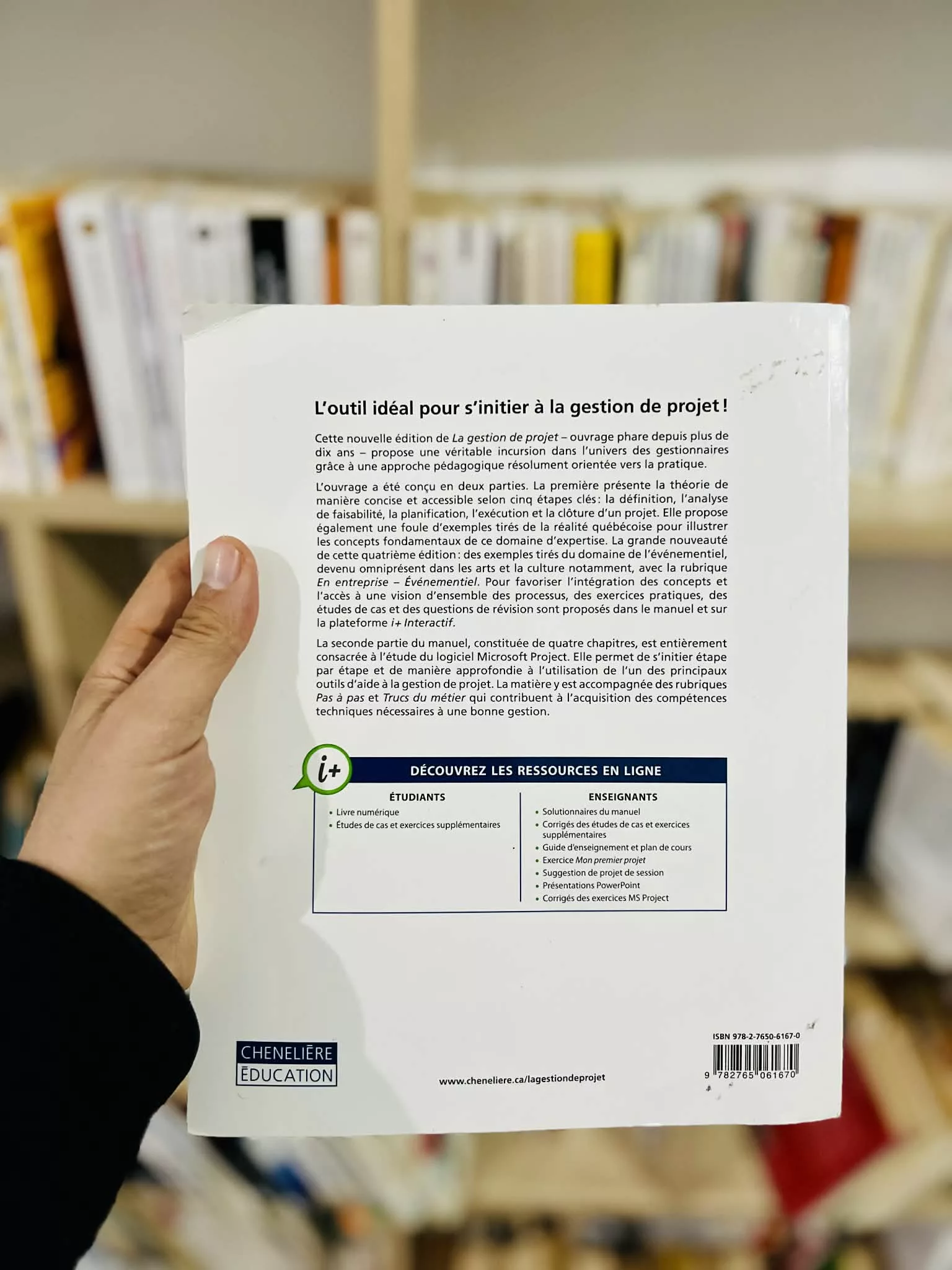 L’ouvrage a été conçu en deux parties. La première présente la théorie de manière concise et accessible selon cinq étapes clés: la définition, l’analyse de faisabilité, la planification, l’exécution et la clôture d’un projet. Elle propose également une foule d’exemples tirés de la réalité québécoise pour illustrer les concepts fondamentaux de ce domaine d’expertise. La grande nouveauté de cette quatrième édition: des exemples tirés du domaine de l’événementiel, devenu omniprésent dans les arts et la culture notamment, avec la rubrique En entreprise – Événementiel. Pour favoriser l’intégration des concepts et l’accès à une vision d’ensemble des processus, des exercices pratiques, des études de cas et des questions de révision sont proposés dans le manuel et sur la plateforme i+ Interactif.