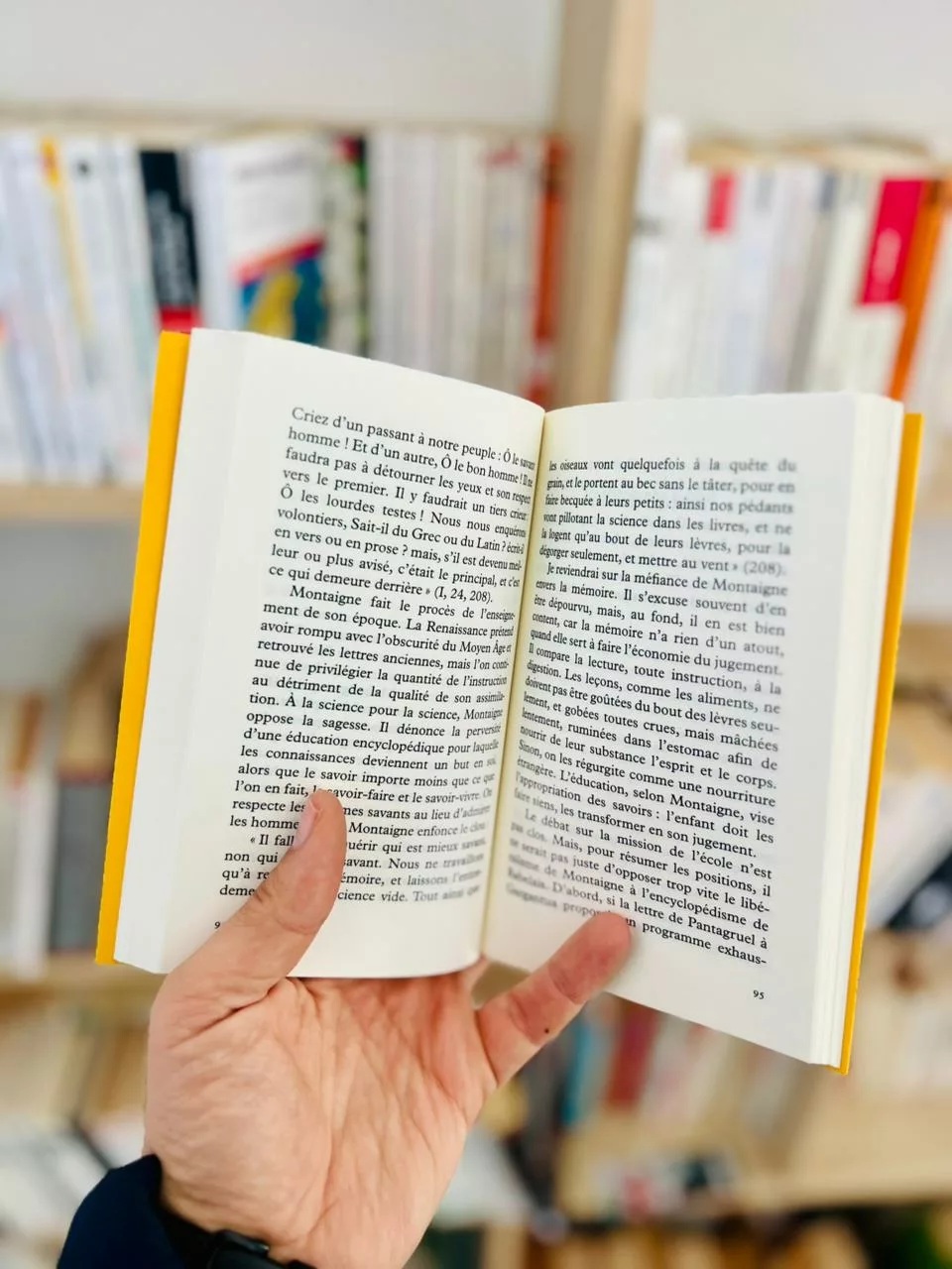 «Longtemps, je me suis demandé si j’oserais citer la conclusion très irrévérencieuse des Essais, au risque d’effaroucher les oreilles délicates : “Ésope ce grand homme vit son maître qui pissait en se promenant, Quoi donc, fit-il, nous faudra-t-il chier en courant ? Ménageons le temps, encore nous en reste-t-il beaucoup d’oisif et mal employé.